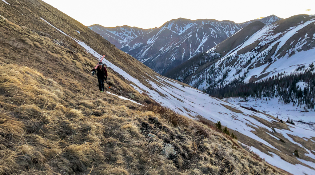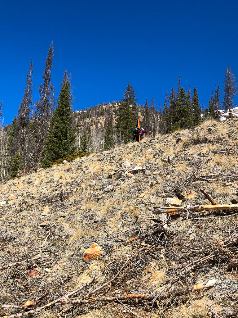 I didn’t get any photos on the Redcloud ski, but it was fast, fun, and pretty mellow. We skied by a couple of guys hiking up sans-shirts, and I can only imagine how bad of a sunburn they got that day. We skied out as far as we could, which got us within a mile of the trailhead. Mark stayed in his boots, I switched to shoes, and before we knew it we were done for the day.