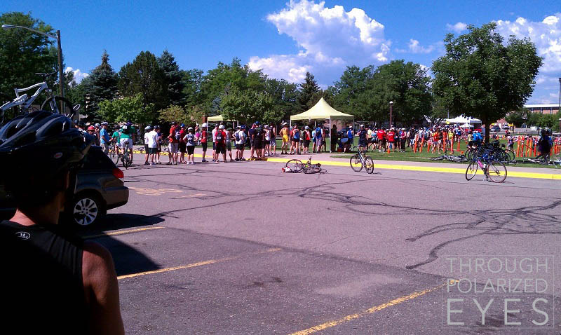 The finish was incredibly uneventful, in stark contrast to prior years (which had the big-wheel course at the end, where it should be). After checking in for our time and throwing a lock on the bike, it was time for the party. I crossed 16th St. Mall, got my two comped beer tokens, and immediately felt like I’d walked in to a frat party. The music sounded like the soundtrack from a LoDo bar at midnight on a Saturday night, complete with a lame DJ putting in random scratches and skips. Shirtless brolies were so numerous they were effectively uncountable.