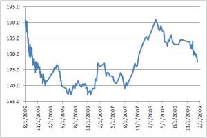 With winter bringing shorter days, colder temperatures, and excessive quantities of generally unhealthy food, it’s a good time to get thinking about fitness again. It’s easy in the summer time. It’s light for hours after getting home, and the warm weather makes it a lot easier to bike to work, go for a walk or run, and just generally be active in the outdoors. Like many people, I’ve had a tendency to gain weight as the weather turns cold, and lose it in the summer. Since I decided to get in shape back in the summer of 2005, I’ve been periodically tracking my weight.
