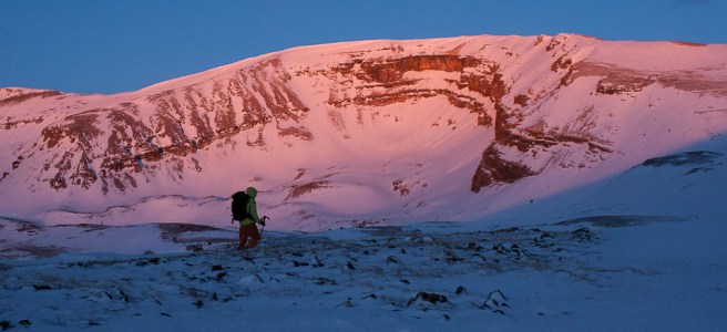 And so a very very long day was set. I had to go to work Thursday, got home and packed, made dinner for the family, put the kids to bed, and got on the road about 8:30pm. I pulled up to the trailhead about 12:30am and realized I’d forgotten to pack hiking shoes. All I had were flip flops to hike the unknown amount of dry trail. I figured I’d make it work rather than hike in ski boots for an hour+, which was the right call as it was almost two and a half miles before I put my boots on heading up.